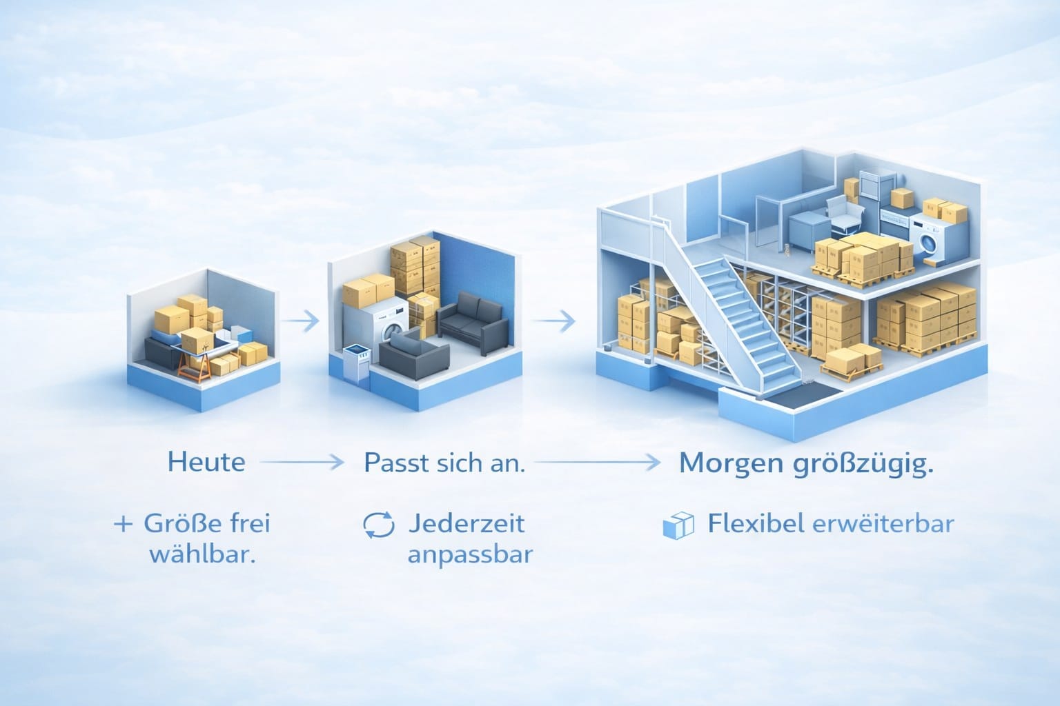 Egal ob wenige Kartons oder komplette Wohnungseinrichtungen – Sie mieten nur so viel Platz, wie Sie wirklich benötigen.