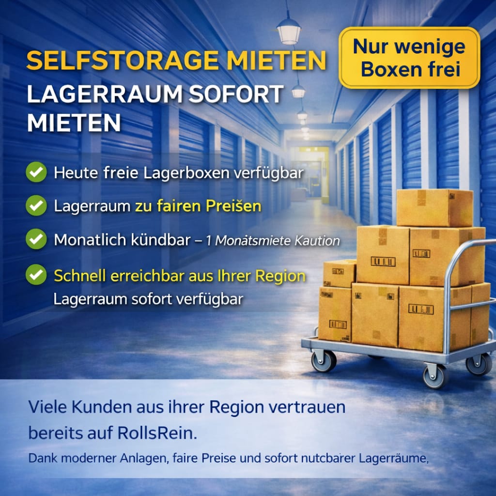 Ob kurzfristige Lagerung beim Umzug, Renovierung oder langfristiges Selfstorage für Ihr Unternehmen: Rollsrein bietet Ihnen individuelle Lagerlösungen in verschiedenen Größen – optimal erreichbar für Kunden aus Usingen und Umgebung.